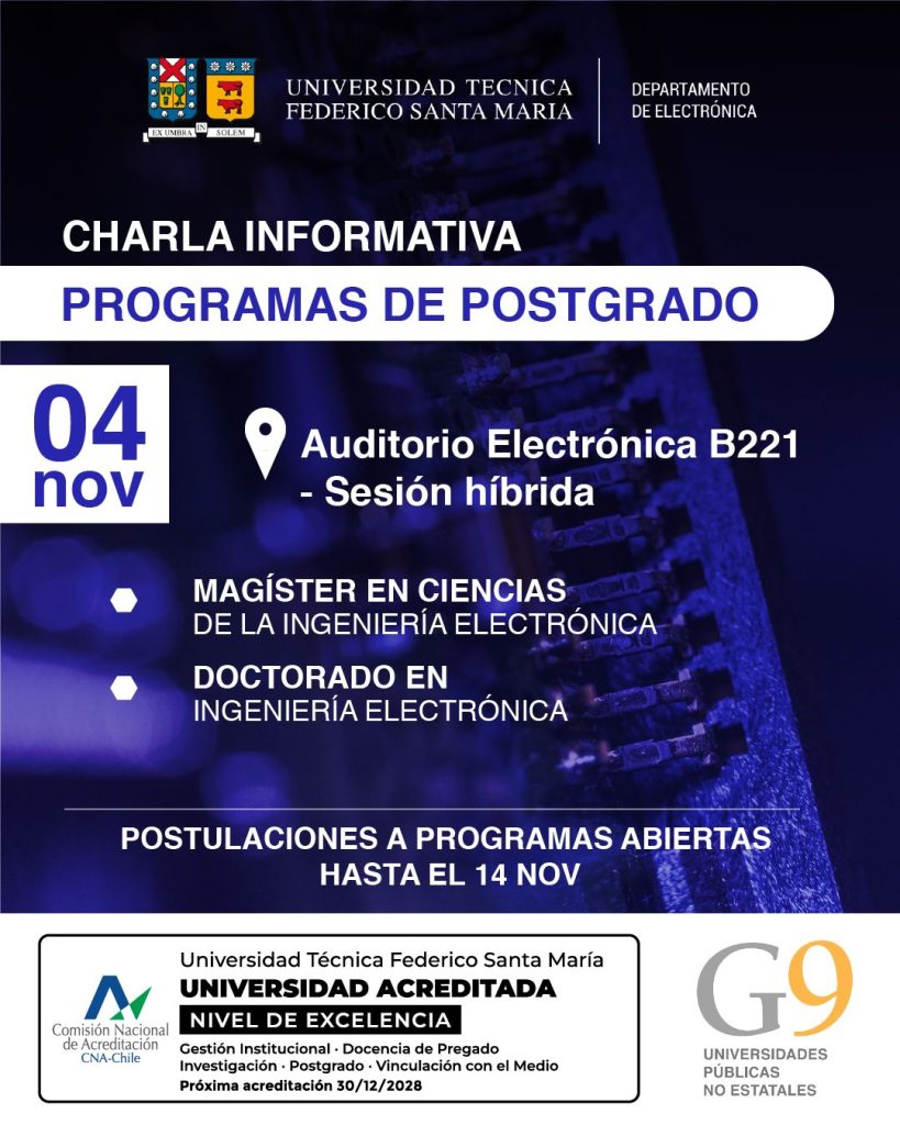 👉 Dirigido especialmente a quienes cursan los dos últimos años de pregrado en la UTFSM. Si ya cuentas con estudios de pregrado y te interesa continuar tu formación en el Postgrado, también puedes ser parte de esta charla — de manera online.
